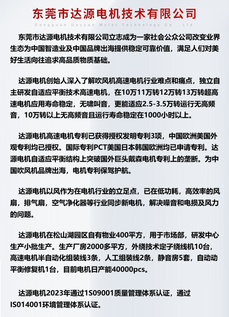 干手器吹风筒无刷直流高速电机厂达源电机10万11万12万转高速马达
